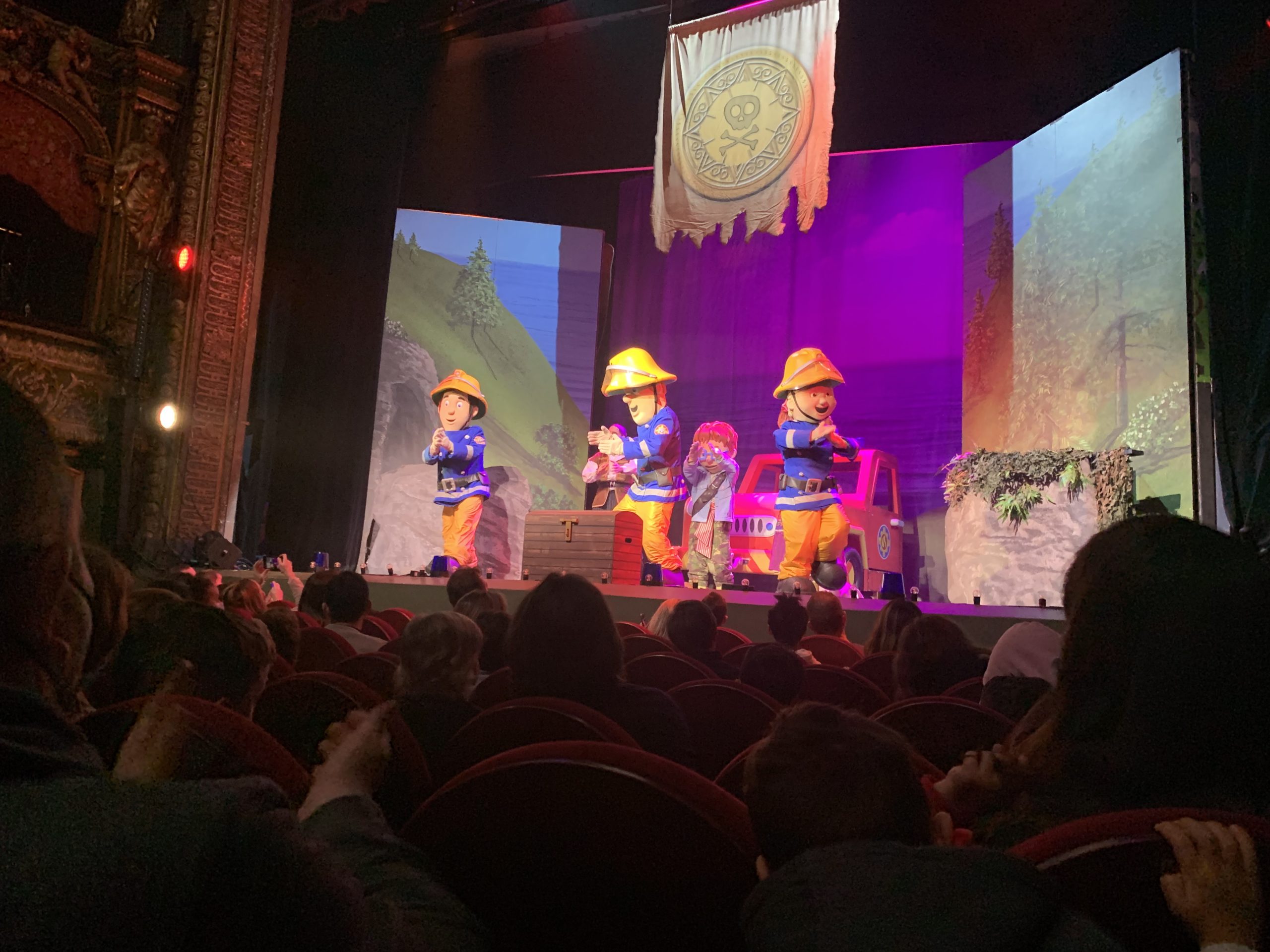 Et nous voici parti pour le dernier spectacle de Noël de la saison, prêt à relever le défi avec Sam le Pompier : Le Trésor Perdu du Pirate. Nous le connaissons principalement via les livres et le dessin animée et c’est la première fois que nous allons le voir en chair et en os. En tant que parent, j’apprécie ces histoires où pour une fois il n’y a pas de méchants, mais plutôt des situations où Sam et sa caserne viennent à la rescousse des habitants de la ville toujours dans la bienveillance.