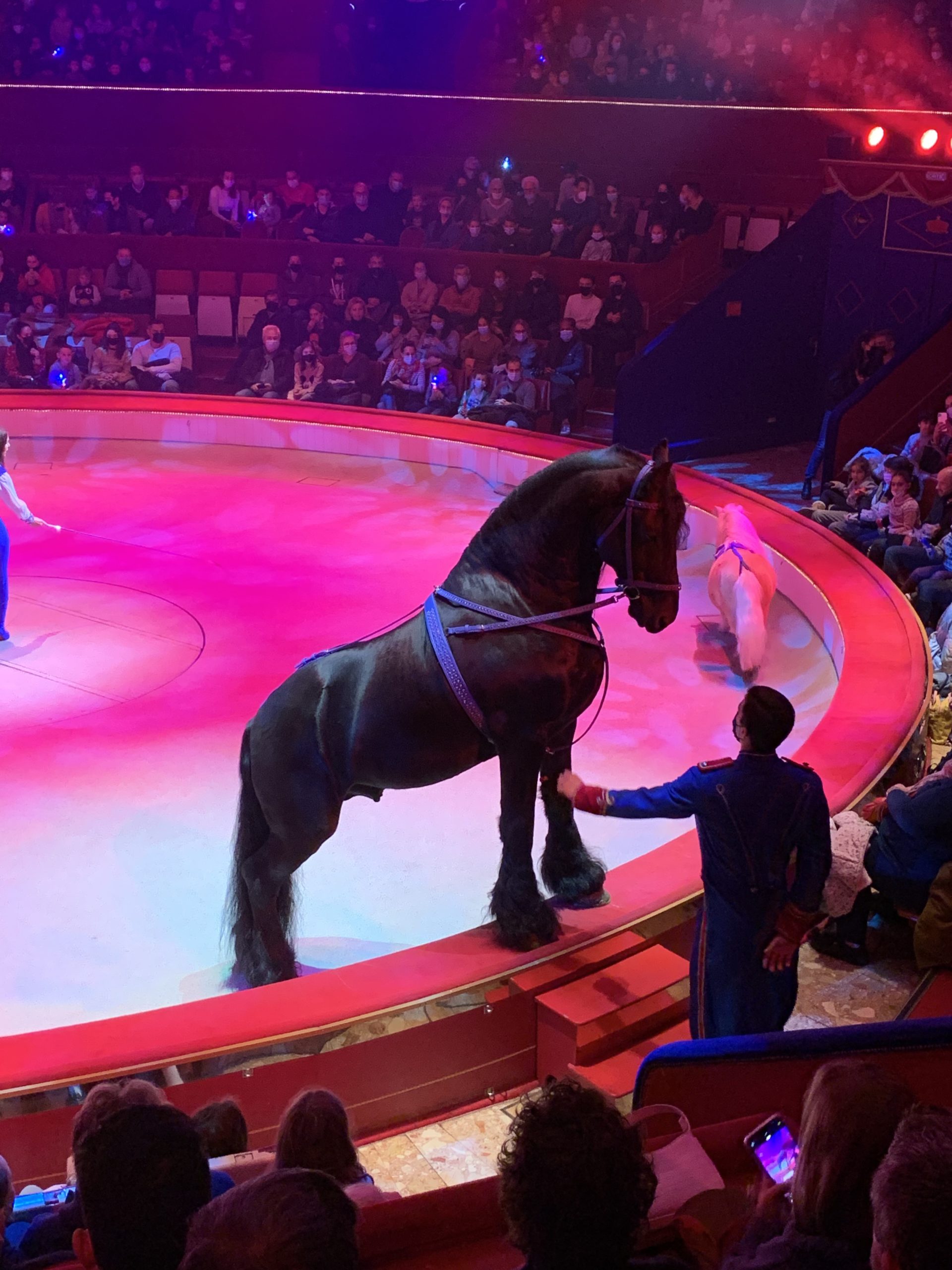 Dès l’extérieur, l’endroit est toujours aussi magique et magnifique. Les enfants sont instantanément  plongés dans cette ambiance du cirque. Ils découvrent le lieu avec de grands yeux ébahis : la piste, les gradins, un orchestre, un marchand de pop-corn … et moi je retrouve cette même atmosphère d’y avoir été enfant.