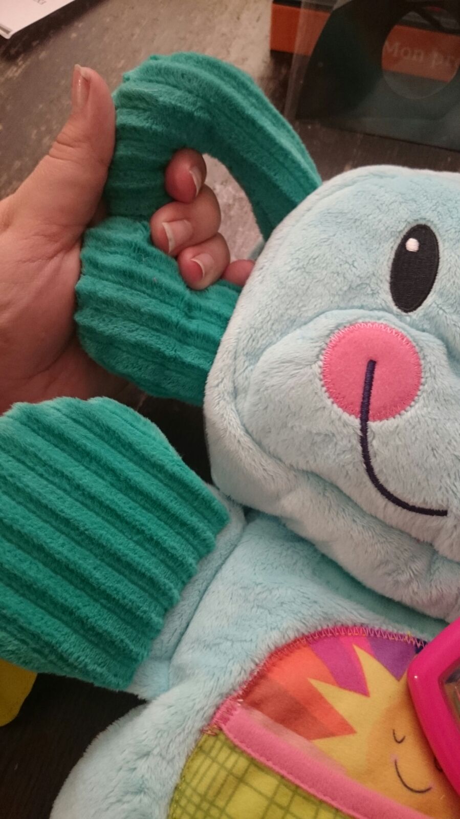 Petite découverte donc d’un jouet étrange destiné aux tous petits qui commencent à manipuler les objets. L’Elefun Nomade se présente sous la forme d’une petite tête d’éléphant en peluche mais ce n’est pas ce que vous pensez ! En effet, derrière cette petite tête toute douce se trouve un petit centre d’éveil pour les enfant. L’Elefun Nomade se déplie pour laisser place à l’éléphant (en entier) dont le corps est recouvert de micro « activités » pour les bébés.